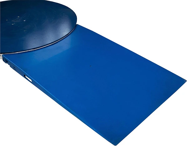 Рампа представляет собой специализированный пандус, который можно приставить с любой удобной стороны поворотной платформы паллетоупаковщика. С его помощью вы легко закатите паллет или поддон с грузом на платформу, в том числе при помощи гидравлической тележки или вилочного погрузчика.