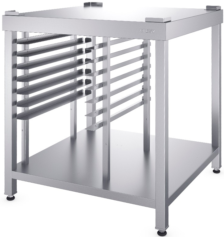 Подставка Atesy ПДТ-Л- 1000.1000.960-02 серии «люкс» предназначена для установки на ее поверхности любого технологического оборудования и размещения гастроемкостей и пекарских противней.