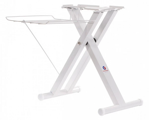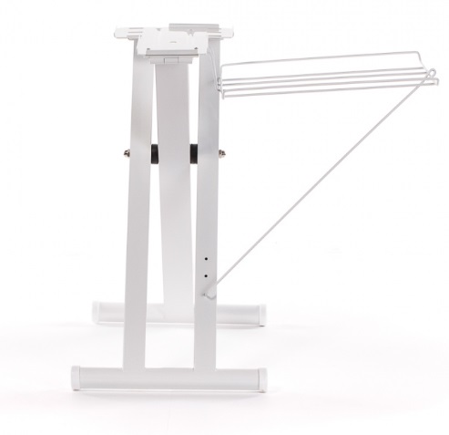 В комплекте со стендом идет полочка для белья. На нее можно складывать уже отглаженные вещи, никуда не отходя от гладильного пресса.