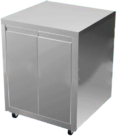 Подставка под аппарат для попкорна, тумба закрытая, две распашные дверцы, нерж. сталь, сплошная столешница.