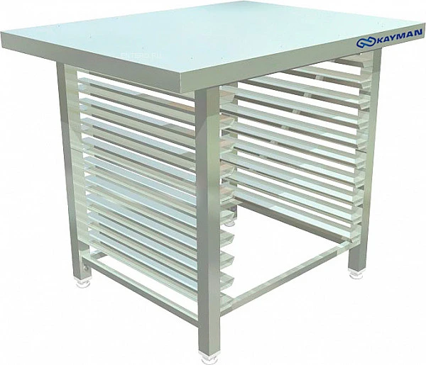 Подставка Kayman ПКУ-1 используется на предприятиях общественного питания и торговли совместно с пароконвектоматами для хранения гастроемкостей и противней.