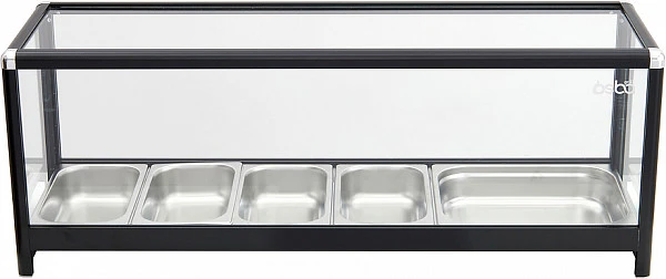 Подставка под гастроемкости Osba SCG 4+1 со стеклом, черная предназначена для хранения и удобного размещения гастроемкостей, а также быстрого доступа к ингредиентам, связанными с изготовлением пиццы, шаурмы, хот догов и прочего ассортимента быстрого питания.