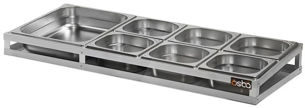 Подставка под гастроемкости Osba SC 6+1 предназначена для хранения и удобного размещения гастроемкостей, а также быстрого доступа к ингредиентам, связанными с изготовлением пиццы, шаурмы, хот догов и прочего ассортимента быстрого питания.