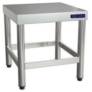 Стойки каркаса выполнены из нержавеющей трубы O40 мм стали AISI 201 с приваренными уголками для крепления столешницы (в верхней части) и усиливающих перемычек (в нижней части).