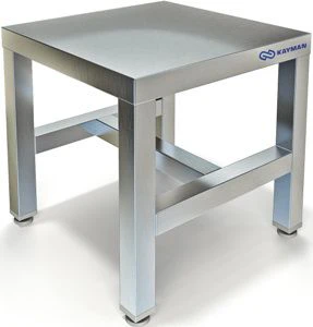 Подставка имеет цельносварную конструкцию, верх из пищевой нержавеющей стали AISI 430 толщиной 0,8мм, каркас из конструкционного профиля нержавеющей стали AISI 430, 40х40 мм, толщиной 1.2мм .