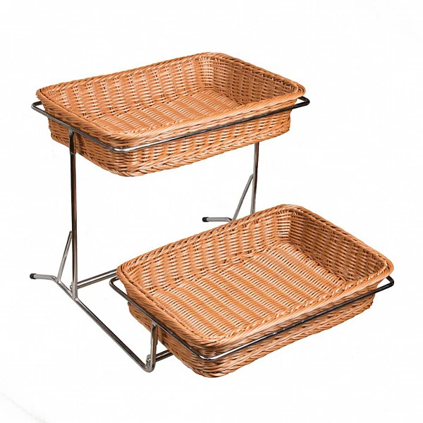 Подставка стойка для корзин P.L. Proff Cuisine нерж. + 2 корзины 40*28*8 см предназначена для красивой подачи (сервировки) еды или напитков в ресторанах, барах, кафе и пр. предприятиях общественного питания.