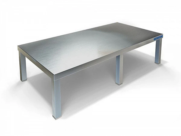 Столешница из нержавеющей стали марки AISI 430 толщиной 2мм, каркас сварной из трубы 40х40 нержавеющей стали марки AISI 430 толщиной 1,2мм.