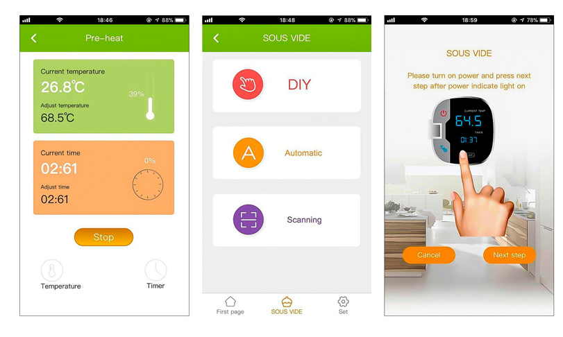Особенность данного оборудования состоит в том, что продукты перед непосредственным приготовлением помещают в упаковку, из которой полностью удаляется воздух. Затем вакуумные пакеты помещают в воду и готовят. Преимущество такого способа приготовления в том, что ароматы и соки сохраняются, а продукты получаются очень нежными и сочными.