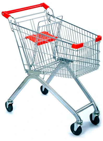 Покупательская тележка на 60 литров с детским сидением на раме типа Евро.