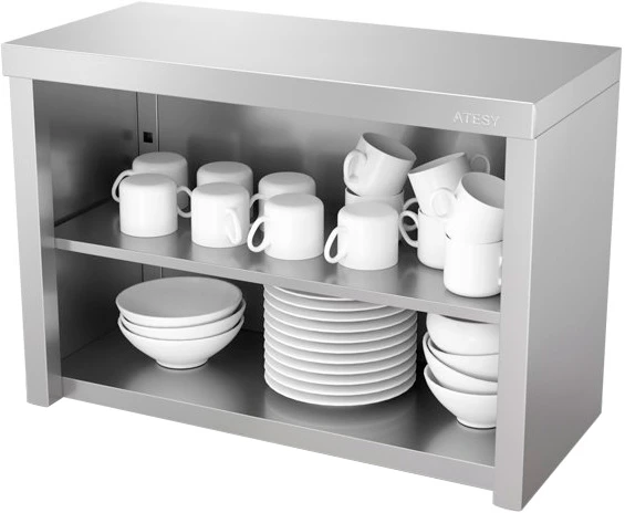 Полка полуоткрытая Atesy ППК-С-1000.420.640-02 (ППК-1000) серии Стандарт предназначена для открытого хранения и демонстрации продуктов, требующих постоянной вентиляции, а также наиболее часто используемой посуды и инвентаря. Данная полка защищает продукты и инвентарь от пыли и жирной копоти.