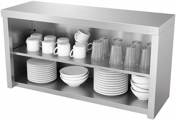 Полка полуоткрытая Atesy ППК-С-1400.420.640-02 (ППК-1400) серии Стандарт предназначена для открытого хранения и демонстрации продуктов, требующих постоянной вентиляции, а также наиболее часто используемой посуды и инвентаря. Данная полка защищает продукты и инвентарь от пыли и жирной копоти.