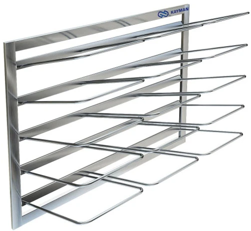 Полка навесная для досок и крышек Kayman может быть размещена как над ванной моечной в моечном отделении, так и над производственным столом в кухонных цехах.