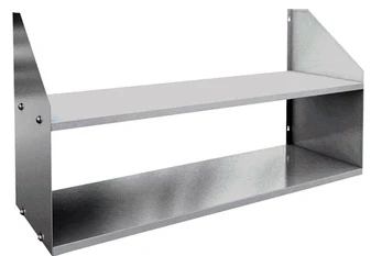 Полка настенная двойная из нержавеющей стали AISI 430 используется для хранения непортящихся продуктов и полуфабрикатов, а также кухонной посуды: сковородок, тарелок, кружек и прочего на предприятиях общественного питания.