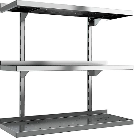 Полка настенная каскадная перфорированная Hicold НПНК-10/4 П используется для хранения непортящихся продуктов и полуфабрикатов, а также кухонной посуды: сковородок, тарелок, кружек и прочего на предприятиях общественного питания.