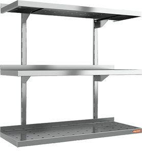 Полка настенная каскадная перфорированная Hicold НПНК-8/3 П используется для хранения непортящихся продуктов и полуфабрикатов, а также кухонной посуды: сковородок, тарелок, кружек и прочего на предприятиях общественного питания.