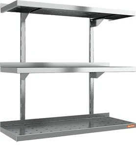 Полка настенная каскадная перфорированная Hicold НПНК-9/4 П используется для хранения непортящихся продуктов и полуфабрикатов, а также кухонной посуды: сковородок, тарелок, кружек и прочего на предприятиях общественного питания.