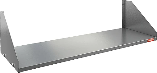 Полка настенная сплошная из нержавеющей стали AISI 430 используется для хранения непортящихся продуктов и полуфабрикатов, а также кухонной посуды: сковородок, тарелок, кружек и прочего на предприятиях общественного питания.