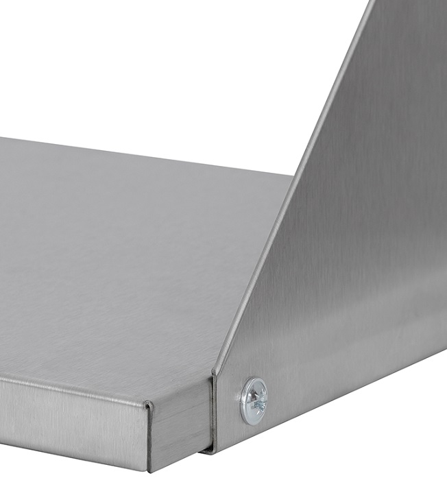Полка настенная Luxstahl ПНК 12/3 сплошная из нержавеющей стали AISI 430 используется для хранения непортящихся продуктов и полуфабрикатов, а также кухонной посуды: сковородок, тарелок, кружек и прочего на предприятиях общественного питания.