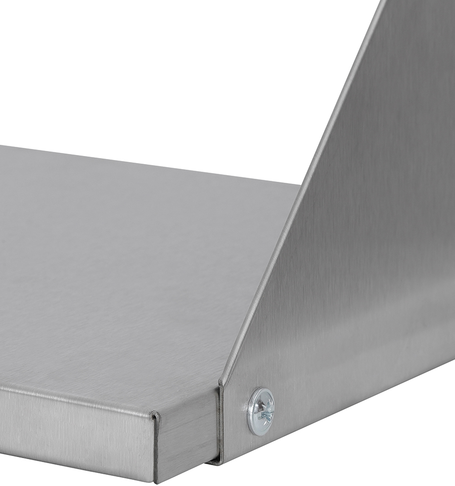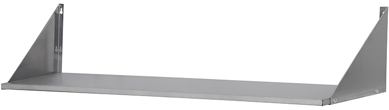 Полка настенная Luxstahl ПНК 13/3 сплошная из нержавеющей стали AISI 430 используется для хранения непортящихся продуктов и полуфабрикатов, а также кухонной посуды: сковородок, тарелок, кружек и прочего на предприятиях общественного питания.