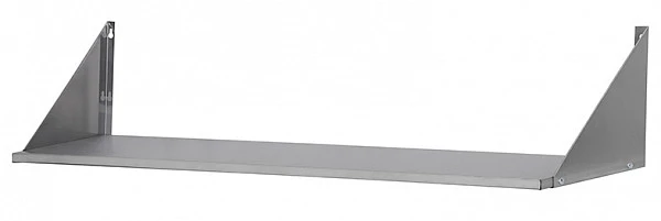 Полка настенная Luxstahl ПНК 13/4 сплошная из нержавеющей стали AISI 430 используется для хранения непортящихся продуктов и полуфабрикатов, а также кухонной посуды: сковородок, тарелок, кружек и прочего на предприятиях общественного питания.