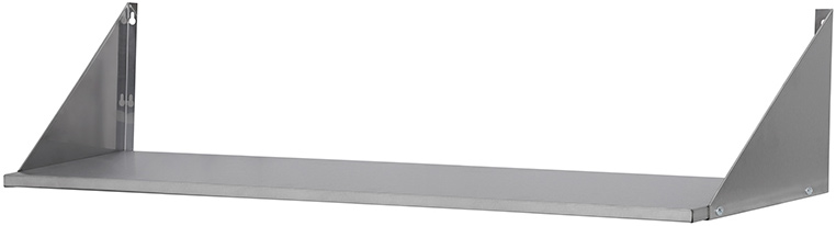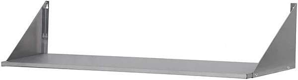 Полка настенная Luxstahl ПНК 14/3 сплошная из нержавеющей стали AISI 430 используется для хранения непортящихся продуктов и полуфабрикатов, а также кухонной посуды: сковородок, тарелок, кружек и прочего на предприятиях общественного питания.