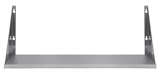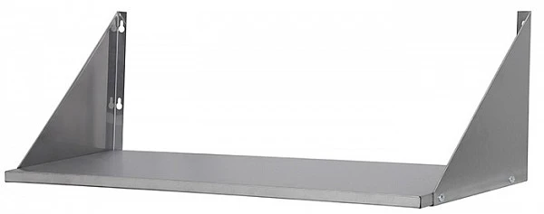 Полка настенная Luxstahl ПНК 9/4 сплошная из нержавеющей стали AISI 430 используется для хранения непортящихся продуктов и полуфабрикатов, а также кухонной посуды: сковородок, тарелок, кружек и прочего на предприятиях общественного питания.