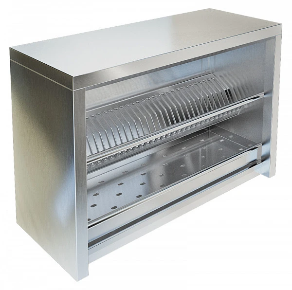 Полка настенная для сушки посуды Техно-ТТ ПН-023/900 сварная из нержавеющей стали марки AISI 430 толщиной 0,8мм, без дверей, на 35 тарелок и 50 стаканов, поддон из нержавеющей стали марки AISI 430 толщиной 0,8мм, полка-кассета формованная под тарелки из нержавеющей стали марки AISI 430 толщиной 0,8мм, съемная.