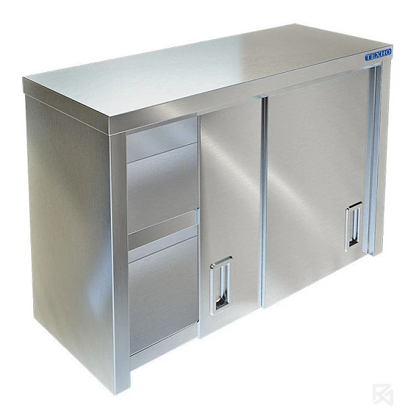 Полка настенная Техно ТТ ПН-122/1900 используется на предприятиях общественного питания для хранения посуды и кухонного инвентаря.Корпус изготовлен из нержавеющей стали AISI 304 толщиной 0.8 мм, две двери-купе, внутренняя полка, задняя стенка - из оцинкованной стали толщиной 0.55 мм.