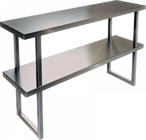 Полка настольная для столов со столешницей ЛДСП разборная из нержавеющей стали марки AISI 430 толщиной 0,8мм, с усилителем, 2 яруса.