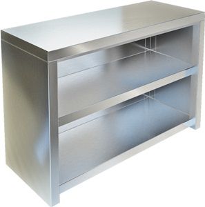 Полка-шкаф настенная сварная из нержавеющей стали AISI 430, без дверей, внутри полка, задняя стенка из нержавеющей стали AISI 430.