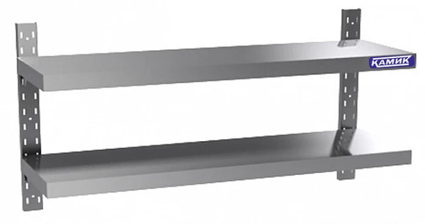 Полка настенная, регулируемая по высоте, для временного хранения и размещения посуды и инвентаря изготовлена полностью из нержавеющей стали.