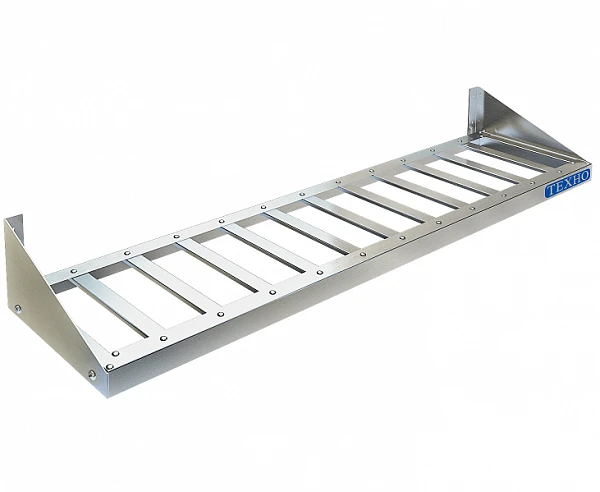 Полка решетчатая Техно ТТ ПН-011/800 из нержавеющей стали марки AISI 430 толщиной 0,8мм, разборная, болтовое соединение. Навесные полки крепятся к стене при помощи двух боковых кронштейнов. Кронштейн крепления может быть, как сверху, так и снизу полки. Полка поставляется в разобранном виде.