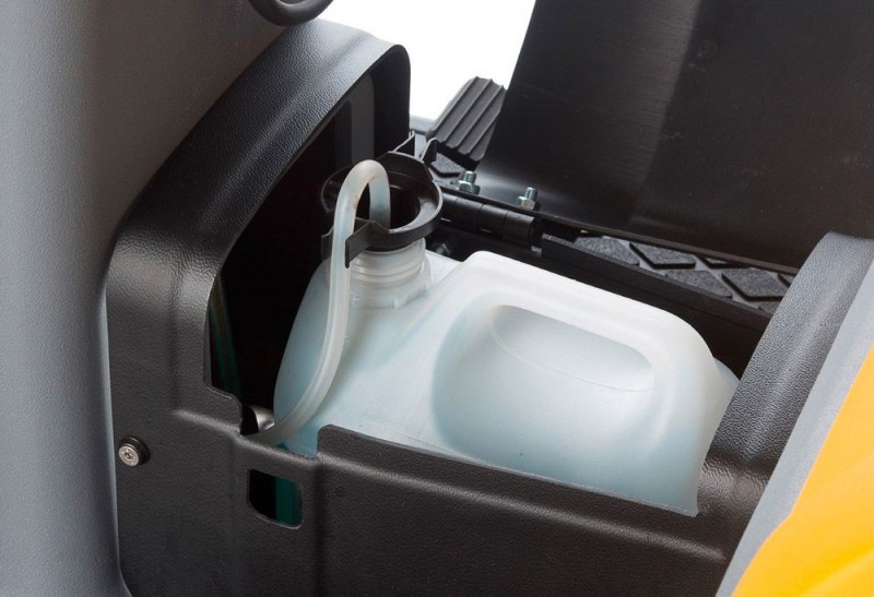 Благодаря трехступенчатой регулировке прижима щеток к полу (максимальное давление 89 кг) и правильной дозировке моющих средств (chemical mixing system) достигаются отличные результаты уборки.
