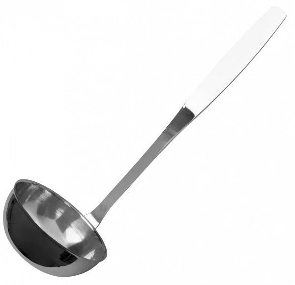 Половник Luxstahl 100 мл [№6] используется на предприятиях общественного питания и торговли для порционного розлива первых блюд и напитков в столовую посуду.