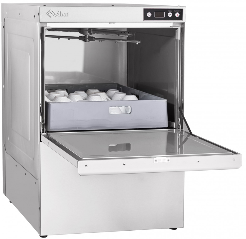 Посудомоечная машина Abat МПК-500Ф без сливной помпы производительностью 500 тарелок в час предназначена для мытья тарелок, стаканов, столовых приборов, подносов, чашек с применением жидкого моющего и ополаскивающего средства.
