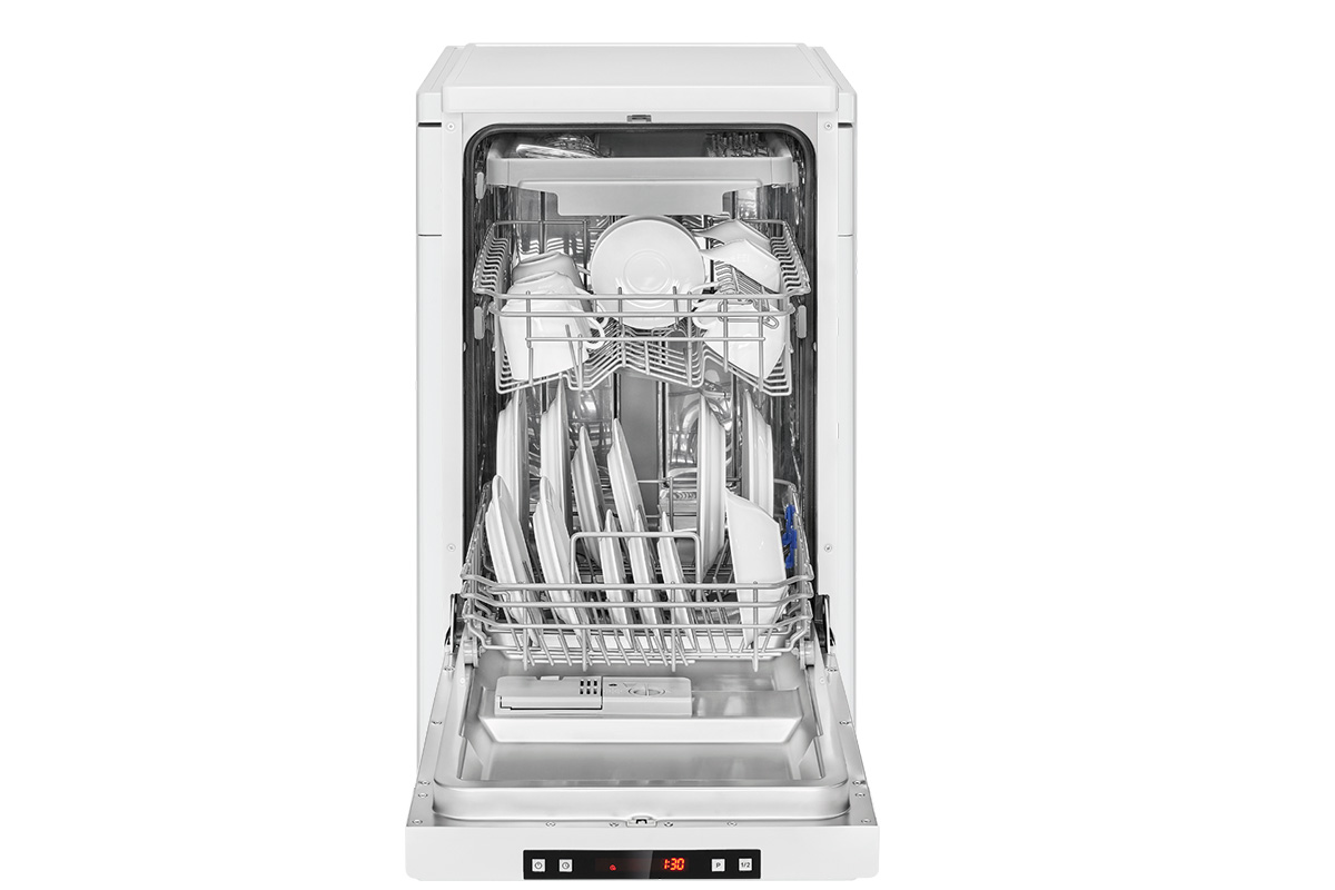 Отдельностоящая посудомоечная машина шириной 45 см, может быть встроена под столешницу