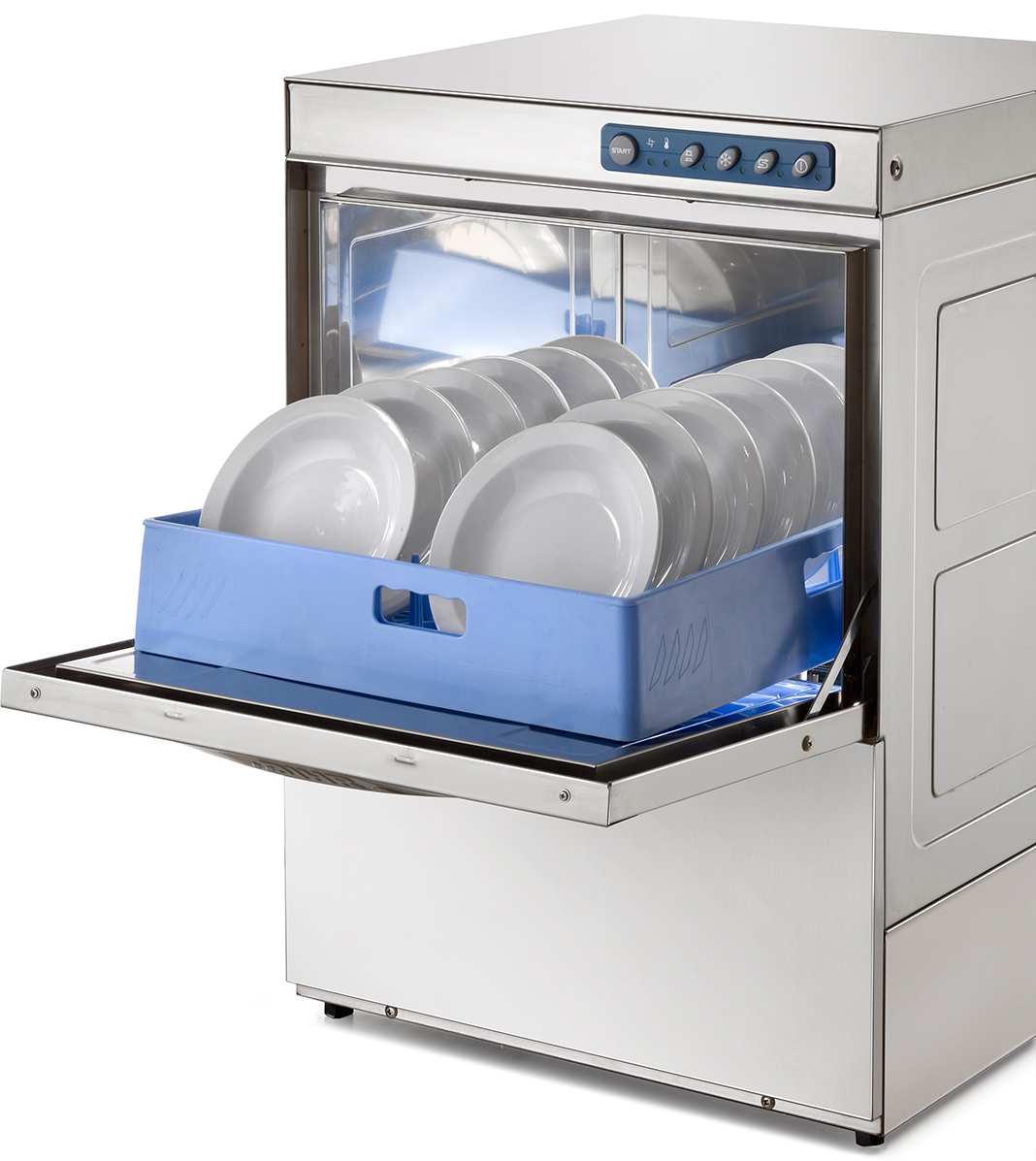 Посудомоечная машина Dihr GS 50 без сливной помпы используется в барах, ресторанах и гостиницах для мойки стаканов, чашек, небольших тарелок и приборов.