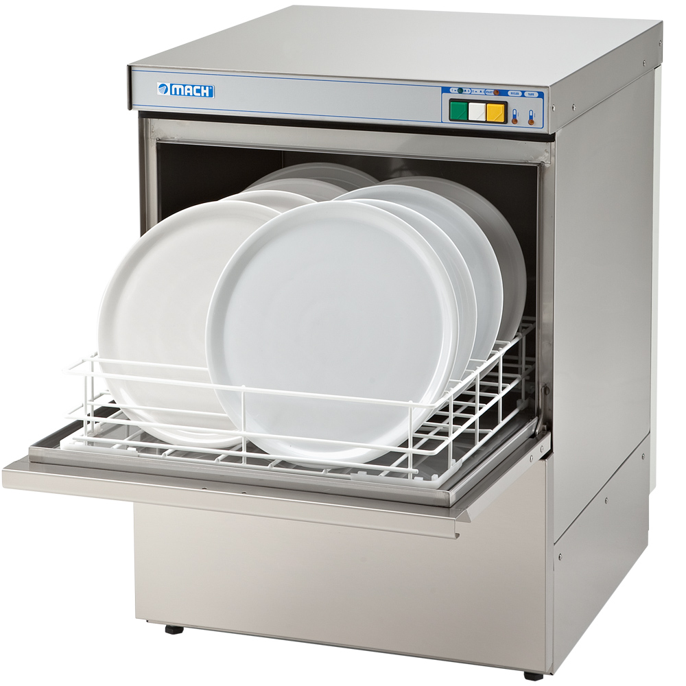 Посудомоечная машина Mach MS/9451 без сливной помпы с фронтальной загрузкой обеспечит высокоэффективную мойку посуды и столовых приборов в заведениях общественного питания небольшого формата. Всего за один час она способна вымыть до 400 тарелок. Оборудование для мытья посуды поможет избавиться даже от трудноудаляемого налета, который образовывается на посуде с течением времени. А неподвижная установка посуды в аппарате гарантирует безопасное мытье, без трещин и битых тарелок.