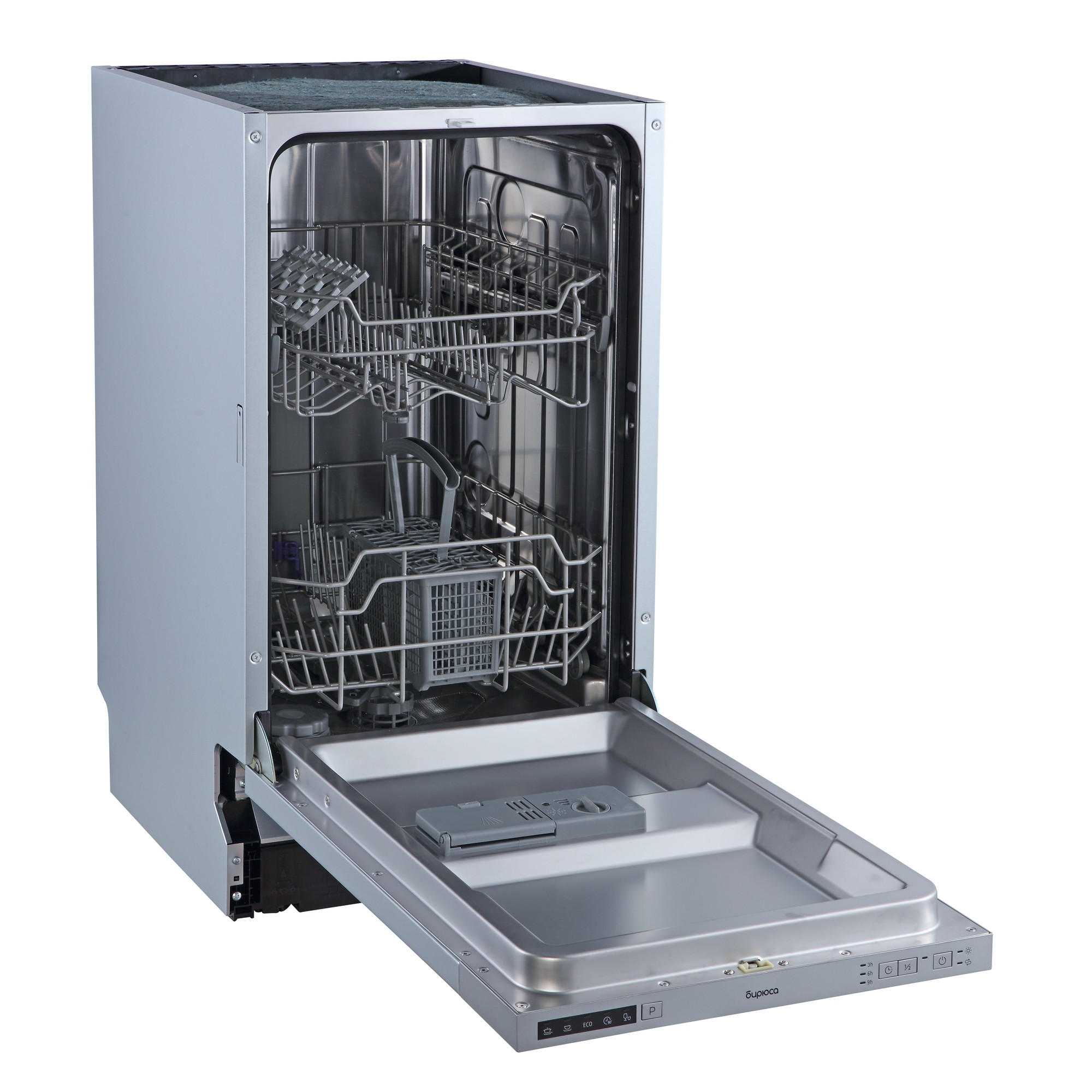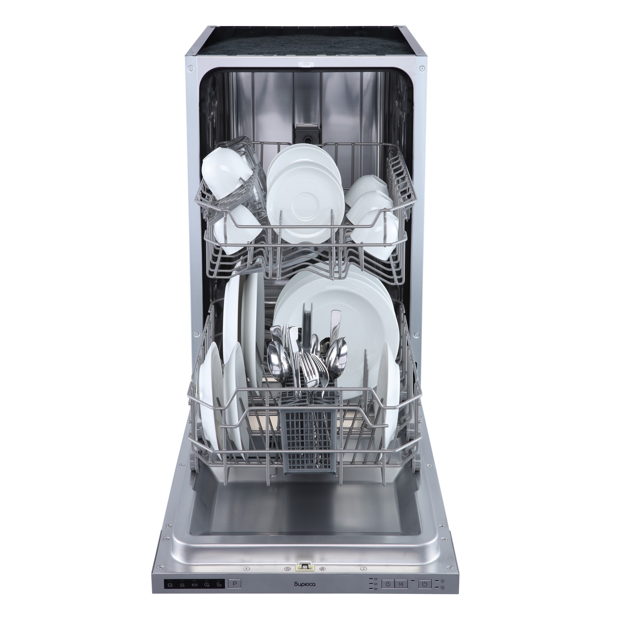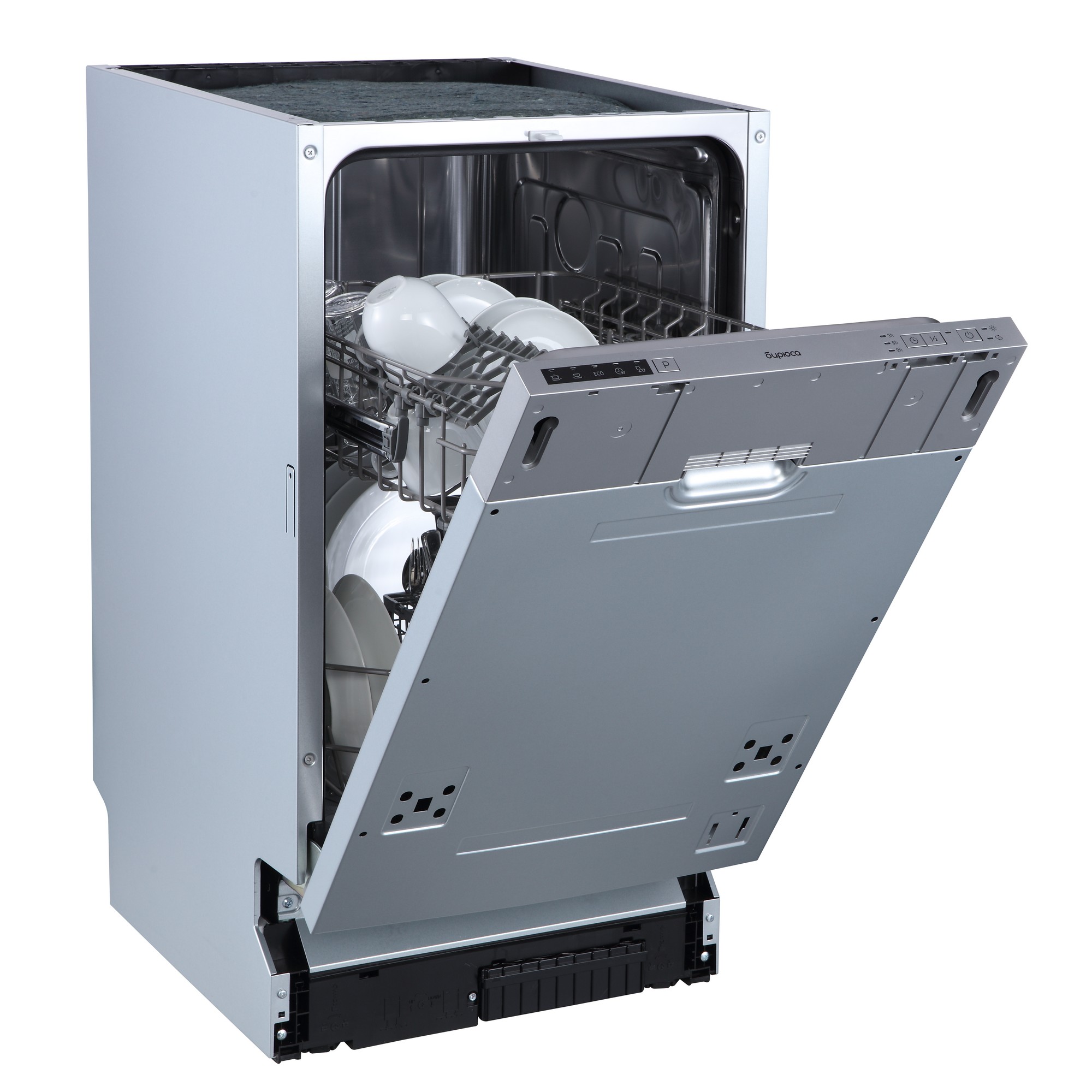 Бытовая встраиваемая посудомоечная машина Бирюса DWB-409/5 оснащена 5 программами с оптимально подобранными параметрами мойки. Оснащена таймером отсрочки запуска.