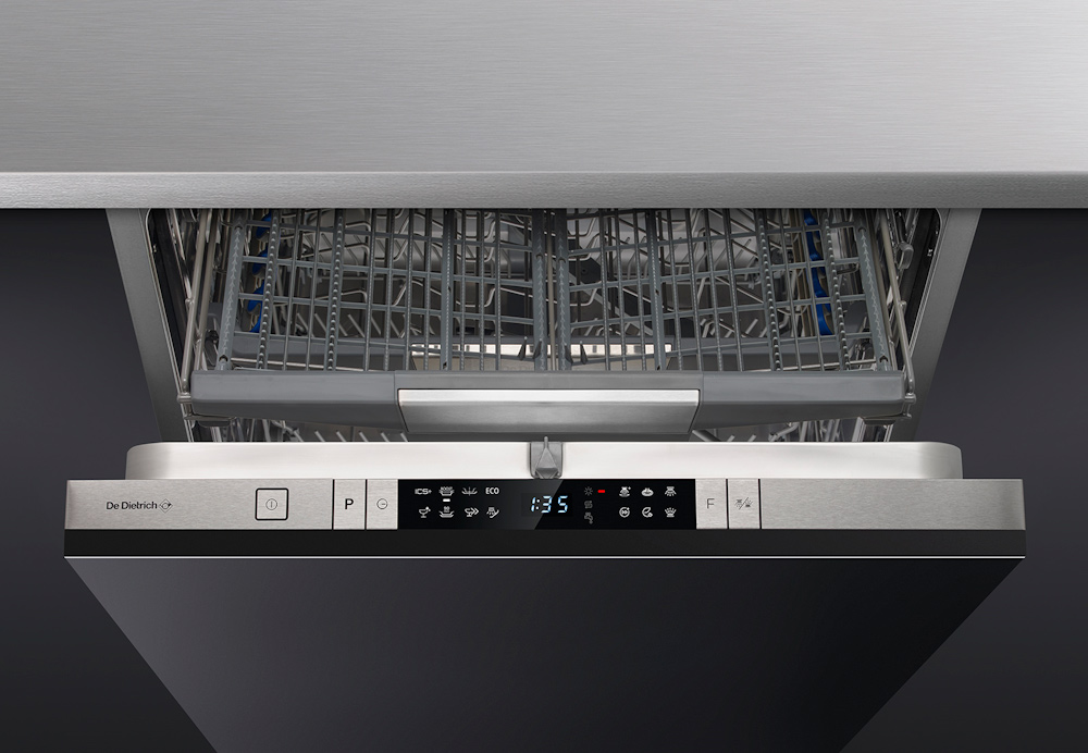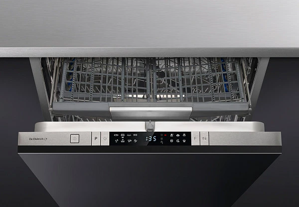 Панель управления новых посудомоечных машин De Dietrich сочетает в себе простоту и точность, что позволяет комфортно управлять процессом мытья. Различные предлагаемые программы, их продолжительность, оставшееся время до конца цикла чётко отображаются посредством белых светодиодов на панели управления.