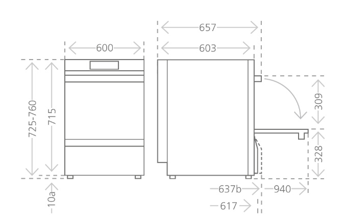 С открытой дверкой: 940 мм