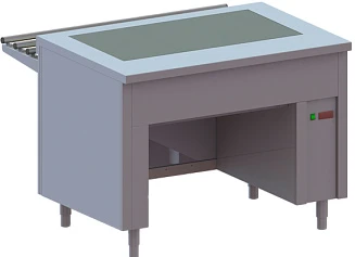 Подогрев происходит снизу, что позволяет использовать тепловую поверхность для размещения и демонстрации уже готовых блюд без использования дополнительного оборудования.