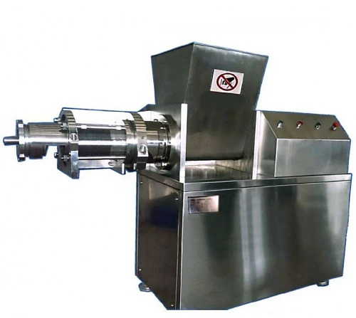 Основным рабочим элементом пресса является шнек. С его помощью осуществляется подача сырья и создается необходимое для последующей обвалки давление. Оно при работе устройства регулируется в зависимости от количества загружаемого мяса и конечного продукта. Перед обвалкой мясо птицы необходимо охладить до температуры 0...4 ˚C. Во время этого процесса происходит также дробление кости, в результате чего снижается выработка неликвидной продукции. Выход конечного продукта осуществляется через щелевую гильзу-фильтр. Конструкция ее выполнена в виде сепарационных колец по примеру европейского оборудования. На выходе получается практически готовая к дальнейшему производству мясных полуфабрикатов продукция. Отходы обвалки в виде костного остатка удаляются при помощи бокового отверстия в корпусе обвалочной головки.