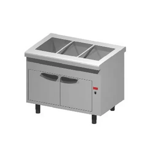 Мармит полностью выполнен из высококачественной нержавеющей стали AISI 304 и оснащен делителями для 3-х гастроемкостей формата GN 1/1 максимальной глубиной до 200 мм.