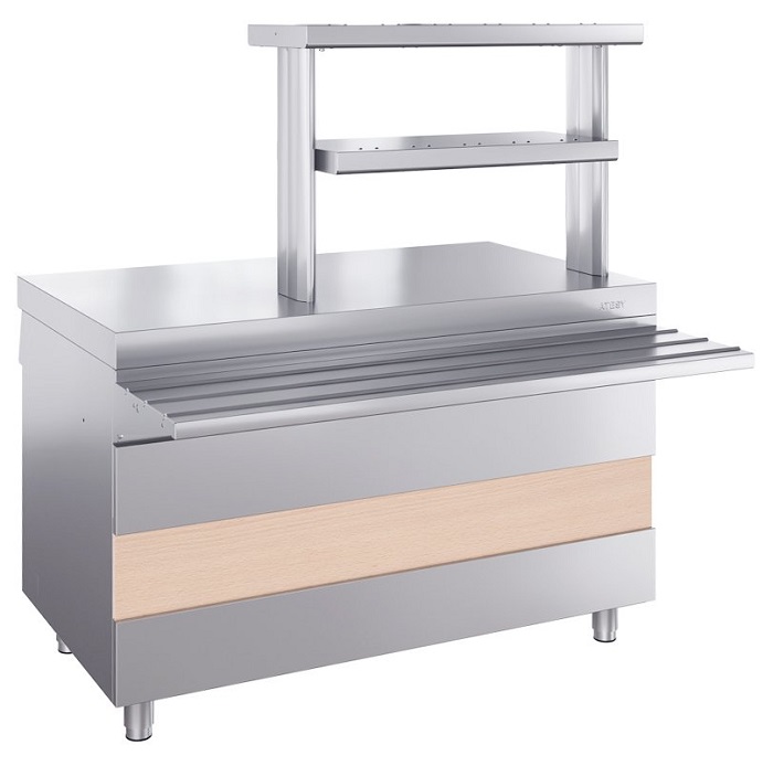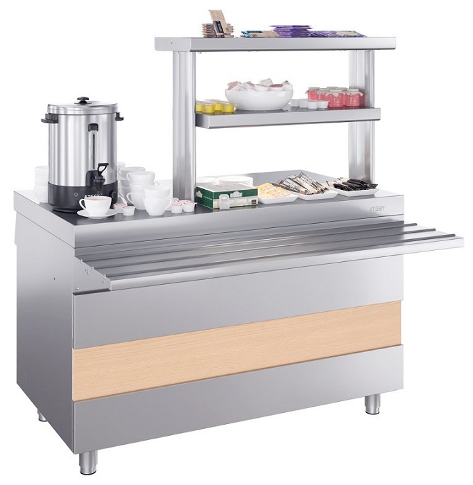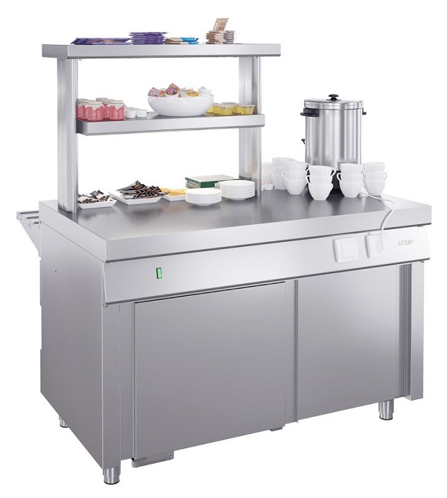Прилавок для горячих напитков Atesy Ривьера ПГН-1200-02-О предназначен для выкладки продуктов и напитков, не требующих подогрева или охлаждения, а также для установки дополнительного оборудования и приспособлений.