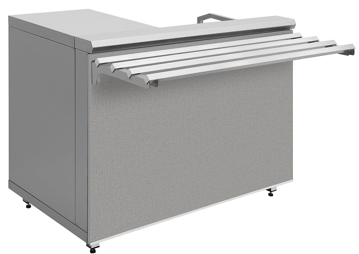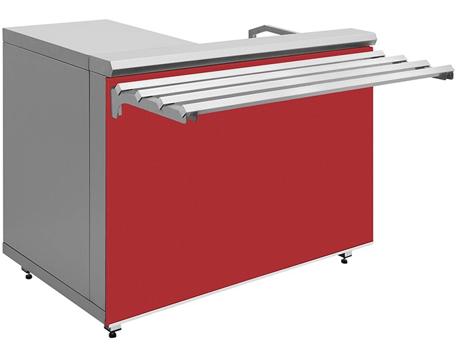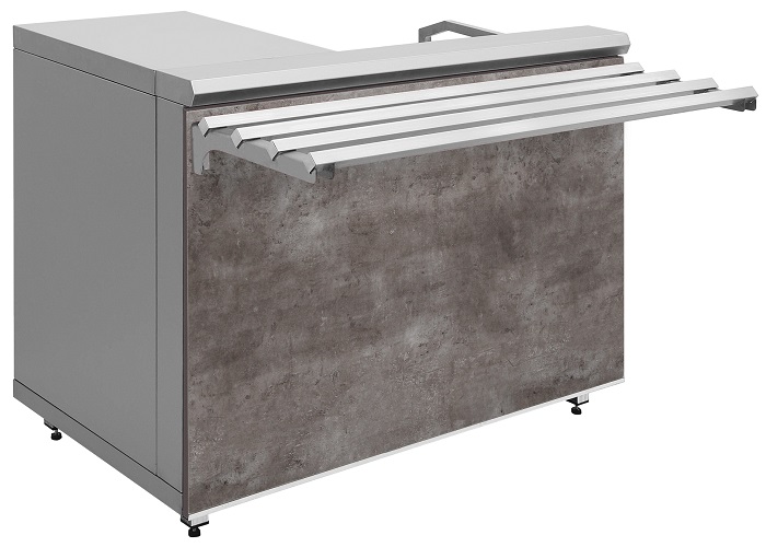 Прилавок кассовый Люкссталь КК-1200 предназначен для установки на нем кассового аппарата для расчета с потребителями и устанавливается в торговых залах предприятий общественного питания в комплекте линий прилавков самообслуживания