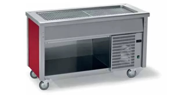 Прилавок полностью выполнен из нержавеющей стали AISI 304. Скруглённые края поверхности способствуют комфортной эксплуатации и легкой очистке. Регуляция температуры и размораживание осуществляются с помощью цифровой программируемой панели управления, охлаждение статическое. Температурный режим от -3 до -10°С. Поверхность вмещает 3 гастроемкости формата GN 1/1и имеет мощность 0,5 кВт. Изоляция прилавка выполнена из вспененного полиуретана высокой плотности. Внизу располагается открытый шкаф.