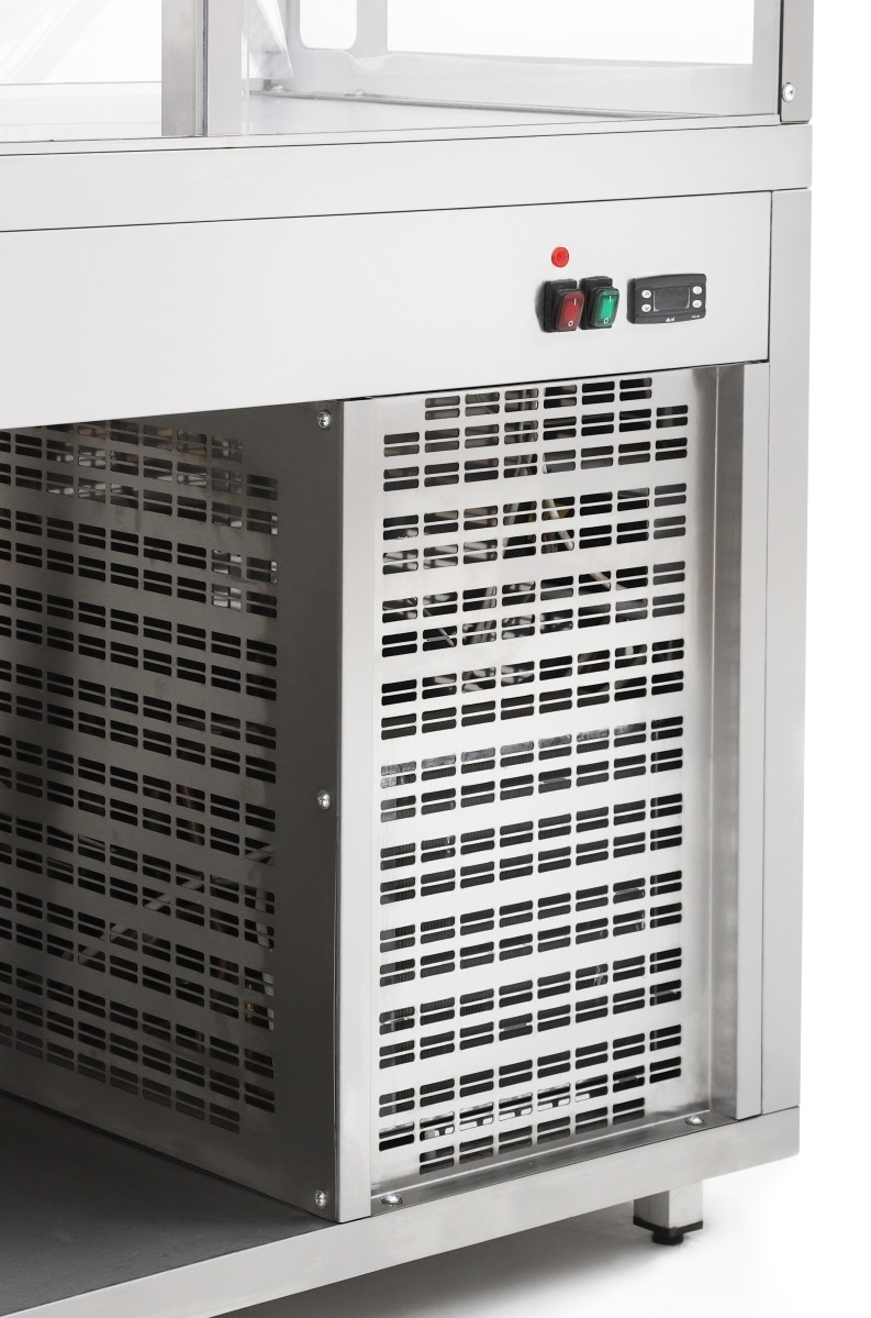 Прилавок холодильный Luxstahl ПХ-1200 предназначен для хранения, демонстрации и раздачи холодных закусок, третьих блюд и охлажденных напитков потребителям и устанавливается в торговых залах предприятий общественного питания в комплекте линий прилавков самообслуживания.