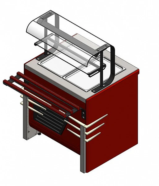 Прилавок со стороны рабочего персонала имеет нишу, которую можно использовать для хранения кухонной утвари. Как дополнительная опция ниша может иметь створчатые дверки.