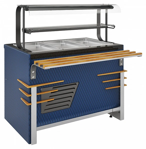 Вместительная полка в верхней части с запатентованной системой регулировки (для выкладки неохлаждаемых блюд и напитков)